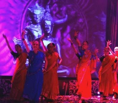Pokaz tańca indyjskiego obejmuje kilka choreografii w różnych nastrojach i tempach do muzyki ze znanych bollywoodzkich filmów takich jak Czasem słońce, czasem deszcz, Jestem przy Tobie, Dil Se, Devdas (taniec solowy w wykonaniu Lakshmi oraz układy grupowe z udziałem Joanny Kapicy i Oli Wachacz lub całego zespołu Alapadma - łącznie 8 osób). Oczywiście w kilku różnych oryginalnych strojach. Lakshmi wykonuje również improwizacje do muzyki na żywo. A razem prowadzą też warsztaty dla widowni, aby zachęcić do wspólnego tańca oraz opowiadają o tańcu, Indiach i kulturze.