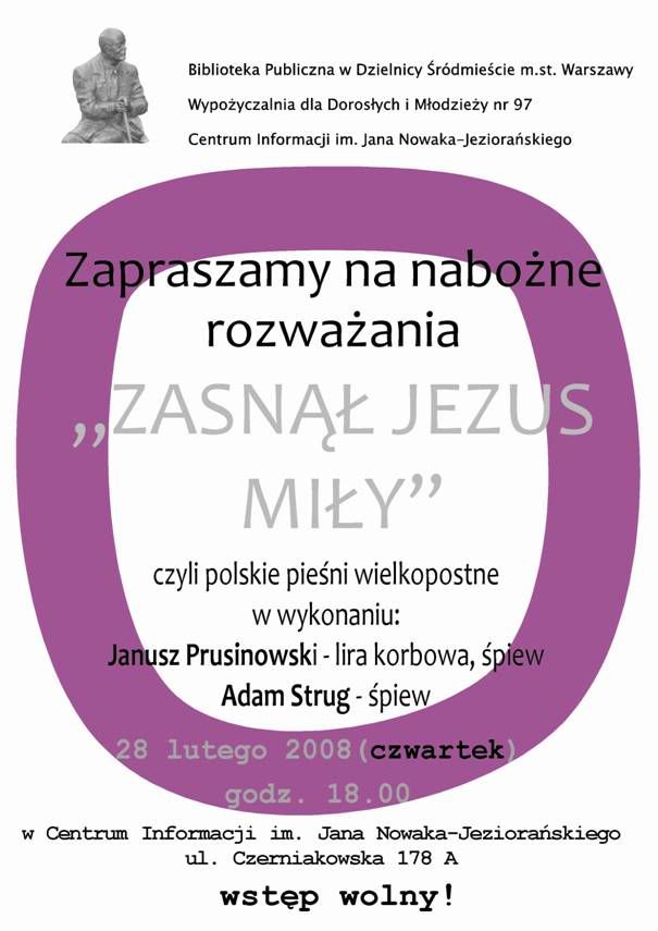 Wątek: 28 lutego: "Zasnął Jezus miły" - wieczór polskich pieśni wielkopostnych (Przeczytany 3212 razy)